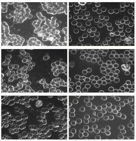[caption] Here’s a visual from a small grounding study often cited in the blood-viscosity conversation, showing red blood cell appearance before and after grounding. The images on the left show how the blood cells appeared under a microscope before grounding. The images on the right are 40 minutes after grounding. It’s all interesting to look at, but still early evidence. You can also learn more about how it works/see a visual demonstration on it here.