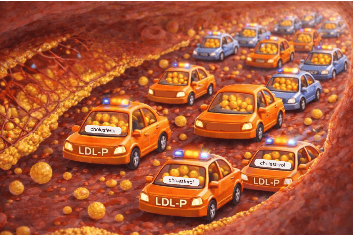 Two markers that can be more useful are ApoB and LDL particle number. These measure how many cholesterol-carrying particles are in your blood. Imagine the particles as cars on a road and the cholesterol as the passengers. What matters most is how many cars are on the road, not how full each one is. The more cars there are, the greater the chance one will have a problem at the artery wall.