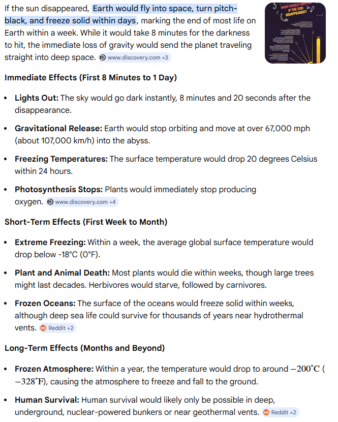 Weird morning coffee conversation yesterday with my girlfriend. “What would happen if the sun burned out?”